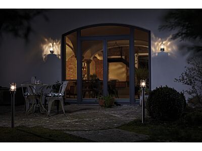 Nerezová svítidla se skleněným difuzérem. Vlastnosti výrobku: Nerezové pouzdro. Difuzér z čistého skla s tepanou povrchovou úpravou. V nabídce s pohybovým senzorem nebo bez něj. V nabídce jako nástěnná a sloupková svítidla. Výhody výrobku: Vysoká flexibilita ve výběru zdroje světla díky patici E27. Vhodné pro chytré aplikace díky kompatibilitě se Smart + světelnými zdroji od LEDVANCE. Snadná a rychlá instalace. Oblasti použití: Venkovní použití (IP44). Fasády budov. Osvětlení vstupních prostor. Terasy, balkony. Osvětlení příjezdové cesty. Příjezdové cesty. Výbava / příslušenství: Včetně kompletního příslušenství pro montáž a zapojení. Zdroje světla nejsou součástí balení. Bezpečnostní informace: Všechna elektrická připojení musí provést kvalifikovaná osoba.. Pozor – nebezpečí úrazu elektrickým proudem.. Výrobek v třídě ochrany I. Všechny elektricky vodivé, kovové části pouzdra, které mohou během provozu nebo údržby v případě poruchy absorbovat napětí, musí být trvale připojeny k ochrannému zemnicímu vodiči..