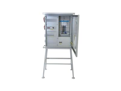 Staveništní rozváděč FAMATEL sr1212-SRFV40101000.1/36M IP54 s přípravou pro hlavní měření (přímé) PRE, jištěný s chráničem 40/4/003-A, hl. vypínačem 40A a hl. jističem B40/3 na kov. stojanu, zásuvky 4x230V, 1x16/5, 1x32/5, přístroje EATON 10kA: 4xPL7-B16/1, 1xPL7-B16/3, 1xPL7-B32/3, PF7-40/4/003-A, 1xPL7-B40/3 na vstupu, použité pouzdro: 600x500x250mm, použitý stojan: 600x650x420mm, barva (komaxit): RAL 7035 světle šedá. Rozměr celého rozváděče: 1255x650x420mm, In 40A.