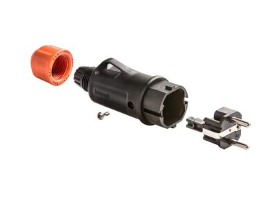Vidlice 1165 IP54/16A/250V/50/60Hz - PLAST, domovní, černá, přímá. Závěsné očko. Materiál těla plast PA6.