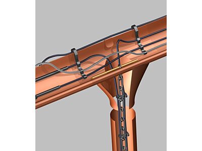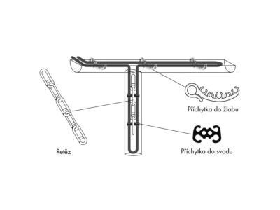 Plastový řetěz pro uchycení kabelu ve svodu - kabel se k řetězu fixuje pomocí příchytek do svodu. Baleno po 10 m (220 ks článků řetězu). Materiál: mrazuvzdorný plast.