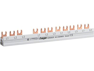 5x KDN363F (Hřebenová přípojnice 3P, 10 mm2 / 12 mod. pro chránič a jističe)