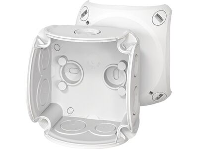 Kabelová krabicová rozvodka z vysoce kvalitního termoplastu. Pro nástěnné aplikace v budovách nebo chráněnou instalaci ve venkovním prostředí. Se stěnovými úchyty a upevněním víka pomocí rychlouzávěrů. Kabelová krabicová rozvodka bez svorek. Kabelový vstup přes pružné těsnící membrány ve dně a stěnách skříně. Následné použití kabelových vývodek odstraněním těsnící membrány je možné.