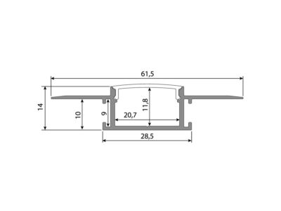 Hliníkový profil pro sádrokarton, rozměry průřezu cca 62x14 mm. Součástí je černý difuzor, který lze do profilu nacvaknout. Tento profil je určen pro krytí a chlazení LED pásků do šíře až 20 mm a výkonu max. 19,2 W/m. Profil lze upevnit pomocí vrutů nebo lepidla. K profilu lze zakoupit také koncovky.