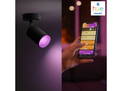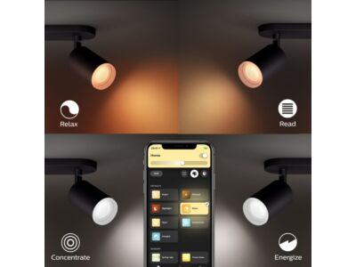 Dvojité moderní bodové svítidlo Fugato v černém provedení z kolekce smart Bluetooth domácího osvětlení Philips Hue je vhodné pro instalaci na strop nebo na stěnu. Směr svitu lze nastavovat pomocí ohebných a otočných kloubů. Jednoduchým připojením přes Bluetooth mobilní aplikaci Philips Hue můžete jeho intenzitu i barvu bílého nebo barevného svitu ovládat ze svého smartphonu. Připojíte-li ho k můstku Philips Hue Bridge (je dodáván samostatně), budete moci využívat všechny jeho funkce a světelné rozvrhy odkudkoli. Svítidlo je vyrobeno z kovu s vnější černou matnou povrchovou úpravou. Uvnitř skrývá patice GU10 pro žárovky o maximálním příkonu 2 x 6 W. V balení jsou dodávány úsporné Hue White and Color Ambiance LED žárovky GU10 o příkonu 2 x 5,5 W s bílými i barevnými světelnými schématy s až 16 milióny odstíny s teplotou chromatičnosti 2000K - 6500K. Jejich životnost je až 15.000 hodin. Krytí IP20 značí vhodnost použití svítidla v interiéru bez zvýšené vlhkosti jako je obývací pokoj, kuchyně nebo ložnice.
