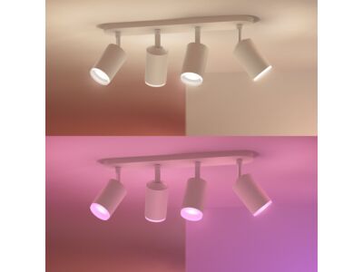Moderní bodové svítidlo Fugato v bílém provedení se čtyřmi bodovkami z kolekce smart Bluetooth domácího osvětlení Philips Hue s nastavitelným směrem svitu pomocí ohebných a otočných kloubů je vhodné pro dostatečné osvětlení obývacího pokoje, ložnice nebo kuchyně. Jednoduchým připojením přes Bluetooth mobilní aplikaci Philips Hue můžete jeho intenzitu i barvu bílého nebo barevného svitu ovládat ze svého smartphonu. Připojíte-li ho k můstku Philips Hue Bridge (je dodáván samostatně), budete moci využívat všechny jeho funkce a světelné rozvrhy odkudkoli. Svítidlo je vyrobeno z kovu s vnější bílou matnou povrchovou úpravou. Uvnitř skrývá patice GU10 pro žárovky o maximálním příkonu 4 x 6 W. V balení jsou dodávány úsporné Hue White and Color Ambiance LED žárovky GU10 o příkonu 4 x 5,5 W s bílými i barevnými světelnými schématy s až 16 milióny odstíny s teplotou chromatičnosti 2000K - 6500K. Jejich životnost je až 15.000 hodin. Krytí IP20 značí vhodnost použití svítidla v interiéru bez zvýšené vlhkosti.