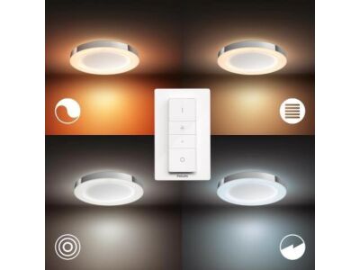 Stropní koupelnové LED svítidlo z kolekce chytrého osvětlení Philips Hue Ø 40,7 cm v leskle chromovém provedení je dodáváno s dálkovým ovladačem Dimmer Switch pro regulaci intenzity a teploty bílého světla v rozsahu 2200K - 6500K. Můžete si tak jednoduše upravovat světlo v koupelně podle denní potřeby, ať už chcete relaxovat ve vaně po dlouhém dni, nebo potřebujete získat energii po probuzení anebo se ve správném světle nalíčit. Svit vychází z integrovaného úsporného vysoce výkonného LED zdroje o maximálním příkonu 1 x 40 W s extrémně dlouhou životností až 30.000 h při až 50.000 spínacích cyklech. Pokud jej připojíte přes můstek Philips Hue Bridge (není součástí balení), budete moci i toto světlo ovládat přes mobilní aplikace odkudkoli. Krytí IP44 značí voděodolnost a vhodnost pro použití ve vlhkém prostředí koupelny. Výhodou svítidla je možnost jeho regulace pomocí Bluetooth aplikaci ve Vašem mobilním zařízení či tabletu.
