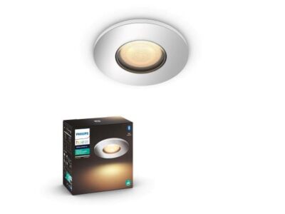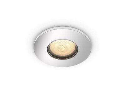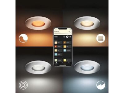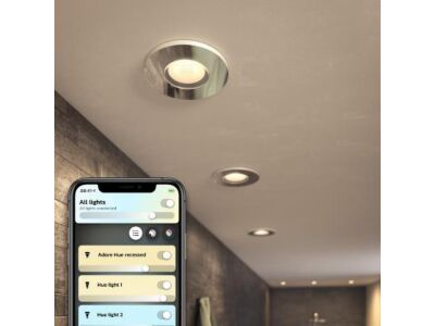 Zapuštěné podhledové koupelnové svítidlo Adore z kolekce chytrého osvětlení Philips Hue extension kit je dodáváno s Hue LED žárovkou White Amibance s paticí GU10 a maximálním příkonem 1 x 5 W s možnou změnou intenzity a barvy bílého svitu s teplotou chromatičnosti od 2200K do 6500K. Světlo lze nastavovat ve 4 světelných schématech: od 2200K - hřejivé žárovkové bílé světlo vhodné pro relaxaci, přes 2700K - příjemný teplý bílý svit vhodný ke zklidnění nebo čtení na konci dne, a 4000K - jasný neutrální odstín simulující polední světlo vhodné pro správné nalíčení nebo oholení tváře až po 6500K - energizující chladné bílé světlo vhodné pro probuzení a start dne. Ovládat jej lze pouze mobilní aplikací Philips Hue pomocí můstku Hue Bridge a příslušenstvím Philips Hue. Výhodou je možnost ovládání přes Bluetooth aplikaci ve Vašem mobilním zařízení či tabletu bez nutnosti dalšího příslušenství. Úsporná LED žárovka má životnost až 15.000 h s až 50.000 spínacími cykly. Krytí IP44 označuje voděodolnost a vhodnost pro použití ve vlhkém prostředí koupelny. Svítidlo v klasickém kruhovém tvaru je vyrobeno z odolného plastu s leskle chromovou povrchovou úpravou. Jeho hloubka zapuštění je 10 cm, montážní otvor je 7 cm.