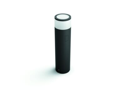 Velký venkovní sloupek Philips Hue Calla extension kit o výšce 40 cm je určen pro rozšíření osvětlení v zahradě nebo na terase ke svítidlu s nízkonapěťovým adaptérem. Balení obsahuje napichovací trn do země o délce 17 cm, konektor pro rošíření a 5 m černý prodlužovací kabel. (Není dodáváno se síťovým adaptérem.) I tento sloupek se tak velmi snadno instaluje kdekoli v zahradě nebo na terase podle potřeby. Svítidlo je vyrobeno z kvalitního tlakově odlévaného hliníku v černé barvě v kombinaci s odolným mléčným plastem. Světlo zajišťuje integrovaný úsporný vysoce výkonný LED zdroj Hue White and Color Ambiance s až 16 milióny odstíny barev v nastavitelných intenzitách. Teplota bílého světla je volitelná ve 4 schématech od 2200K (žárovkové teplé bílé světlo pro odpočinek a relaxaci), přes 2700K (teplé bílé světlo vhodné na čtení), po 4000K (jasné denní světlo simulující polední svit pro práci a soustředění), až po 6500K (studené bílé světlo navozující energii). Anebo je možné nastavovat barevné světlo podle příležitosti nebo nálady. Vyžaduje připojení přes můstek Hue Bridge (není součástí dodávky) pro možnost ovládat svítidlo odkudkoli přes mobilní aplikace. Životnost zdroje je extrémně dlouhá až 25.000 hodin. Krytí IP65 značí voděodolnost proti tryskající vodě a prachotěsnost pro použití ve vlhkém venkovním prostředí.
