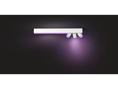 Stropní tříbodové svítidlo Centris se třemi flexibilně nastavitelnými spoty připevněnými na kovovou základnu o rozměrech 78,2 x 8,5 cm v bílém provedení z kolekce chytrého osvětlení Philips Hue je vhodné pro umístění do obývacího pokoje, ložnice či kuchyně. Uvnitř základny pod plastovým bílým difuzorem je integrovaný LED zdroj Hue White and Color Ambiance s příkonem 1 x 34 W, jehož intenzitu světla lze libovolně upravovat podle denní potřeby od 2000K (teplé žárovkové světlo) do 6500K (studené bílé světlo) a zároveň je možné vybírat z 16 milionů barev, ať už chcete relaxovat na konci dne, nebo potřebujete získat energii po probuzení anebo právě vaříte, či pracujete na počítači. Na jednom konci je svítidlo osazeno celkem třemi paticemi GU10 pro úsporné LED zdroje o maximálním příkonu 3 x 6 W. Součástí balení jsou tři Hue LED žárovky o příkonu 3 x 5,7 W White and Color Ambiance, které odpovídají svitu klasickým třem 50 W žárovkám, mají extrémně dlouhou životnost až 15.000 h při až 50.000 spínacích cyklech. Pokud je připojíte přes můstek Philips Hue Bridge (není dodáván v balení), budete moci i toto světlo ovládat přes mobilní aplikace odkudkoli. Krytí IP20 není určeno do míst s vyšším výskytem vlhkosti vzduchu. Výhodou tohoto svítidla je možnost ovládat jej pomocí Bluetooth aplikace ve Vašem mobilním zařízení či tabletu.