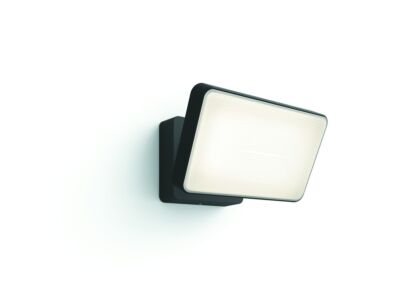Venkovní nástěnný reflektor Discover z kolekce smart zahradního osvětlení Philips Hue výborně nasvítí požadované prostory venku svým silným stmívatelným bílým nebo barevním světlem. Pro jeho výrobu byl použit kvalitní tlakově odlévaný hliník v černé barvě v kombinaci s bílým mléčným plastem s jemným vzorem. Svit vychází z integrovaných úsporných vysoce výkonných LED diod Hue White and Color Ambiance s až 16 milióny odstíny barev v nastavitelných intenzitách. Teplota bílého svitu je volitelná ve 4 schématech od 2200K (žárovkové teplé bílé světlo pro odpočinek a relaxaci), přes 2700K (teplé bílé světlo vhodné na čtení), po 4000K (jasné denní světlo simulující polední svit pro práci a soustředění), až po 6500K (studené bílé světlo navozující energii). Anebo je možné nastavovat barevné světlo podle příležitosti nebo nálady. Vyžaduje připojení přes můstek Hue Bridge (není dodáván v balení) pro možnost ovládat svítidlo odkudkoli přes mobilní aplikace. Životnost zdroje je extrémně dlouhá až 25.000 hodin. Krytí IP44 označuje voděodolnost a vhodnost pro použití ve vlhkém venkovním prostředí.