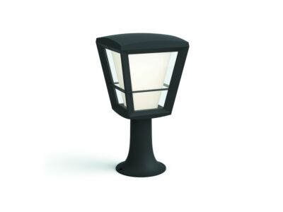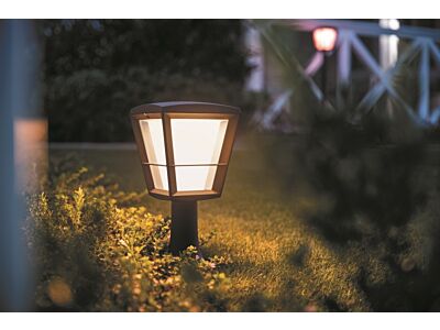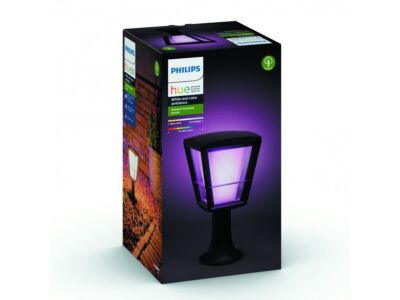 Venkovní malý sloupek s hranatou lucernou Philips Hue Econic v módním pojetí klasického tvaru účelně a dekorativně nasvítí přístupové cesty k domu, v zahradě nebo terasu. Svítidlo je vysoké 32,2 cm a je vyrobeno z kvalitního tlakově litého hliníku v černé barvě v kombinaci s čirým sklem. Svit vychází z integrovaných úsporných vysoce výkonných LED diod Hue White and Color Ambiance s až 16 milióny odstíny barev s nastavitelnou intenzitou světla. Teplota bílého svitu je volitelná ze 4 schémat od 2200K (žárovkové teplé bílé světlo pro odpočinek a relaxaci), přes 2700K (teplé bílé světlo vhodné na čtení), po 4000K (jasné denní světlo simulující polední svit pro práci a soustředění), až po 6500K (studené bílé světlo navozující energii). Anebo lze volit barevné světlo podle příležitosti nebo nálady. Vyžaduje připojení přes můstek Hue Bridge (není dodáván v balení) pro možnost ovládat svítidlo odkudkoli přes mobilní aplikace. Životnost zdroje je extrémně dlouhá až 25.000 hodin. Krytí IP44 označuje voděodolnost a vhodnost pro použití ve vlhkém venkovním prostředí.