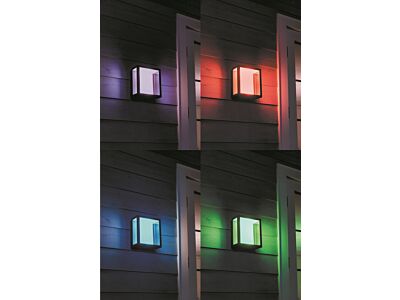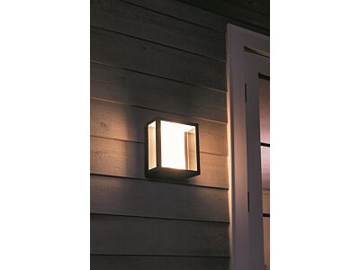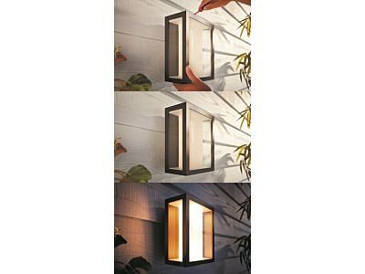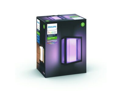 Nástěnné venkovní svítidlo Philips Hue Impress v jednoduchém módním stylu výborně a chytře rozsvítí vaše venkovní prostory. Pro jeho výrobu byl použit kvalitní litý hliník v černé barvě v kombinaci s čirým sklem. Světlo zajišťuje integrovaný úsporný vysoce výkonný LED zdroj Hue White and Color Ambiance s až 16 milióny odstíny barev ve volitelných intenzitách. Teplota bílého svitu je nastavitelná ve 4 schématech od 2200K (žárovkové teplé bílé světlo pro odpočinek a relaxaci), přes 2700K (teplé bílé světlo vhodné na čtení), po 4000K (jasné denní světlo simulující polední svit pro práci a soustředění), až po 6500K (studené bílé světlo navozující energii). Anebo je možné nastavovat barevné světlo podle nálady. Vyžaduje připojení přes můstek Hue Bridge (není dodáván v balení) pro možnost ovládat svítidlo odkudkoli přes mobilní aplikace. Životnost zdroje je extrémně dlouhá až 25.000 hodin. Krytí IP44 označuje voděodolnost a vhodnost pro použití ve vlhkém venkovním prostředí.