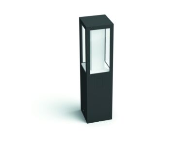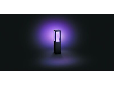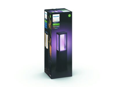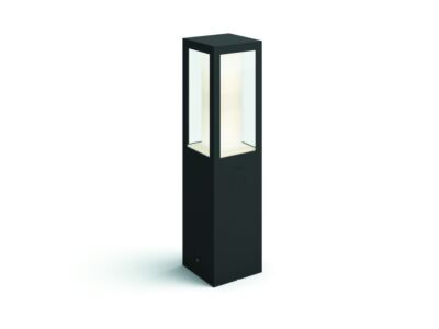 Malý venkovní sloupek Philips Hue Impress o výšce 40 cm má jednoduchý nadčasový design pro efektní a účelné nasvícení přístupových a příjezdových cest k domu a v zahradě. Svítidlo je vyrobeno z kvalitního tlakově odlévaného hliníku v černé barvě v kombinaci s čirým sklem. Světlo vychází z integrovaného úsporného vysoce výkonného LED zdroje Hue White and Color Ambiance s až 16 milióny odstíny barev v nastavitelných intenzitách. Teplota bílého světla je volitelná ve 4 schématech od 2200K (žárovkové teplé bílé světlo pro odpočinek a relaxaci), přes 2700K (teplé bílé světlo vhodné na čtení), po 4000K (jasné denní světlo simulující polední svit pro práci a soustředění), až po 6500K (studené bílé světlo navozující energii). Anebo je možné nastavovat barevné světlo podle nálady. Vyžaduje připojení přes můstek Hue Bridge (není dodáván v balení) pro možnost ovládat svítidlo odkudkoli přes mobilní aplikace. Životnost zdroje je extrémně dlouhá až 25.000 hodin. Krytí IP44 značí voděodolnost a vhodnost pro použití ve vlhkém venkovním prostředí.