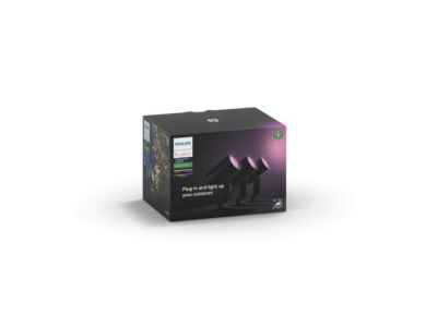 Set 3 ks venkovních LED svítidel Lily s adaptérem z kolekce zahradního smart osvětlení Philips Hue se snadno instaluje pomocí zapichovacího trnu do země nebo nástěnného či zemního úchytu. Svit v bílých nebo RGB barevných odstínech různé intenzity zajišťuje integrovaný LED zdroj Philips Hue White and Color Ambiance, který lze ovládat odkudkoli přes mobilní aplikaci ve vašem chytrém zařízení. Vyžaduje připojení přes Philips Hue Bridge, který není dodáván se svítidlem. Svítidla jsou dodávána v sadě s adaptérem a 0,5 m dlouhým napájecím kabelem do zásuvky.
