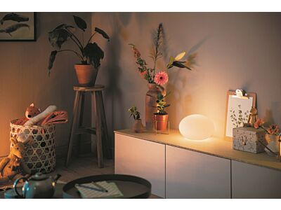 Elegantní stolní skleněná lampička o průměru 26 cm z kolekce smart domácího osvětlení Philps Hue je osazena paticí E27 a dodávána s Philips Hue Bluetooth LED žárovkou White and Color Ambiance s okamžitým startem o maximálním příkonu 1 x 9,5 W odpovídající svitu klasické 60 W žárovky a životností až 25.000 h. Snadno ji připojíte přes Bluetooth pro možnost ovládání hlasem nebo pomocí mobilní aplikace přes můstek Philips Hue Bridge (není součástí dodávky) pro využití všech jejích funkcí naplno. Bílé světlo v rozsahu od 2000K do 6500K nebo barevný svit v až 16 miliónech odstínech v různých intenzitách lze ovládát mobilní aplikací podorující systémy Android 7.0 a vyšší nebo iOS 11 a vyšší z vašeho smartphonu odkudkoli. Lze také využít synchronizace a užívat si světelných efektů s hudbou, filmy nebo hrami. Vytvořte si vaší osobitou atmosféru přesně podle vaší nálady a přání. Stínidlo lampičky je vyrobeno z mléčného skla s jemnou strukturou proužků.