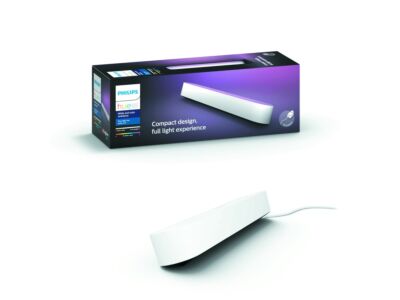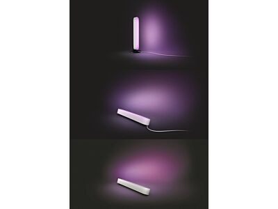Stolní svítidlo Play z kolekce chytrého interiérového osvětlení Philips Hue obsahuje integrované úsporné vysoce výkonné LED diody White and Color Ambiance, které svítí až 16 milióny odstíny barev v rozsahu 2200K - 6500K. Základní sada obsahuje 1 světelnou lištu Play v bílé variantě , bílý přívodní kabel o délce 2 m, stojánek pro postavení ve svislé poloze, klip pro připevnění k TV, síťový adaptér, oboustrannou lepící pásku a další instalační materiál. Připojením přes můstek Philips Hue Bridge (není součástí balení) budete moci využívat všechny funkce této lampičky - ovládání odkudkoli přes mobilní aplikaci, synchronizaci s TV nebo počítačem, hudbou nebo hrami pomocí Hue Sync, nastavení barevného nebo bílého stmívatelného světla podle vašich aktuálních potřeb a nálady. K této základní sadě je možné připojit další až 2 lampy Hue Play (extension kit) pro zapojení do přiloženého síťového adaptéru.