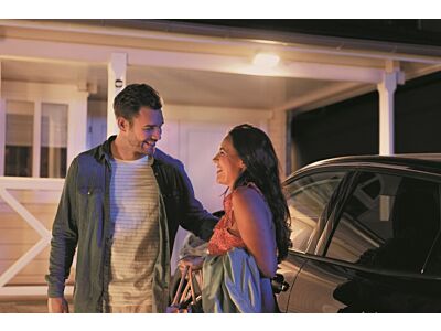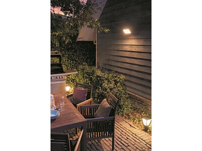 Nástěnné venkovní LED svítidlo Welcome z kolekce zahradního smart osvětlení Philips Hue se silným teplým bílým světlem Hue White 2700K s možností regulace intenzity svitu. Vyžaduje připojení přes Hue Bridge, který není dodáván se svítidlem. K výrobě byl použit kvalitní tlakově litý hliník s černou matnou povrchovou úpravou v kombinaci s odolným mléčným bílým plastem s jemnou strukturou. Krytí IP44 značí voděodolnost a vhodnost použití v exteriéru.