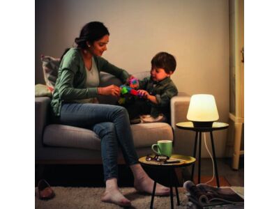 Stolní lampa Philips Wellness má velice nápaditý design, který připomíná svým tvarem houbu, a hodí se do moderně zařízených interiérů. Skvěle osvítí Vaši ložnici, knihovnu či pracovnu. Její tělo je vyrobeno z kvalitního dřeva v matně černé barvě o průměru 18,6 cm. Skleněný difuzor má matně bílou povrchovou úpravu. Uvnitř svítidla je patice E27 s maximálním příkonem žárovky 1 x 15W. Součástí balení je LED žárovka Hue White Ambiance s příkonem 1 x 9,5W a svítivostí 806lm. Její barva světla je nastavitelná od 2200K (teplé žárovkové světlo) do 6500K (studené bílé světlo). Díky dálkovému ovladači Dimmer Switch (součástí balení) můžete lampu snadno ovládat pomocí 4 tlačítek. Nově svítidlo podporuje ovládání pomocí aplikace přes technologii Bluetooth. Svítidlo je určeno pro vnitřní použití - IP20.