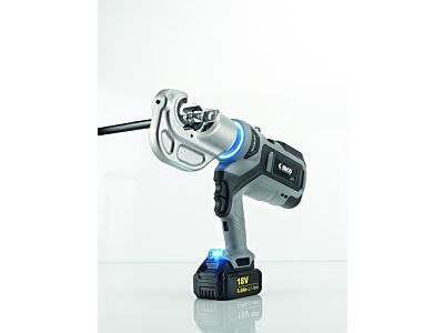 Řezný nástroj ve tvaru pistole: CimPress 400 C : Lisovací hlava otočná o 270°, vyměnitelné lisovací destičky, dvoustupňová hydraulika pro vysokorychlostní posuv, ruční návrat po ukončení lisování: Lisovací síla: 130 kN; Šířka zdvihu/otevření: 38 mm; Rozsah lisování: 10-400 mm²; Doba lisování: (v závislosti na průřezu): 8-9 s;, Servisní cyklus: 15.000 operací; Pracovní rozsah: -10°C až +60°C; Napětí baterie: 18 V; Kapacita baterie: 5,0 Ah Li-Ion; Doba nabíjení baterie: 60 min, Dodáváno v kufříku se 2 bateriemi a nabíječkou, Rozměry: 425x335x86; Hmotnost: 7 350 g.