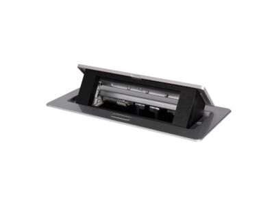 We have introduced table boxes to BIURO portfolio. The box is adapted for mounting two full 45 modules or four 22.5 half modules. Two colour variants - black and silver - are most popular in uses of 45 equipment in desks and table tops. Moreover, table boxes have the so-called “soft pop-up” opening mechanism (hydraulic mechanism).