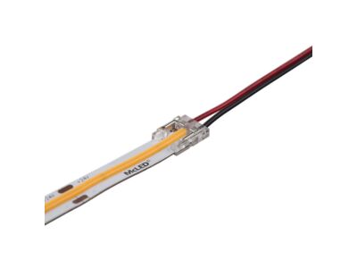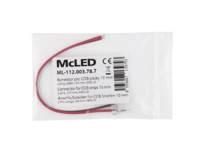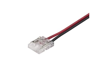 Připojovací konektor jednobarevných LED pásků šíře 10 mm, 2 piny. Konektor využijete ke snadnému propojení LED pásků s řízením, nebo napájecími zdroji s výstupní svorkovnicí. Konektor lze použít na LED pásky s jakýmkoli počtem LED/m, pásek se zasune do konektoru a konektor zafixuje kleštěmi. Doporučujeme pro max. proud 3,5 A, pro větší proudy je třeba vodiče k LED pásku připájet. Rozměry plastové části:11,7 (š) x 15,6 (d) x 3,3 (v) mm, celková délka cca 160 mm. Kabel: barva červená, černá, velikost AWG20/0,5 mm².