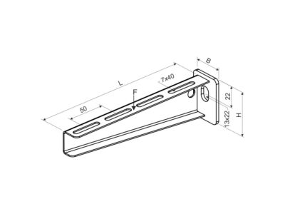 Držák pro montáž kabelových tras šíře 400 mm nebo více kabelových tras do celkové šíře 400 mm na stěny, vyšší mechanická únosnost, povrchová úprava žárový zinek