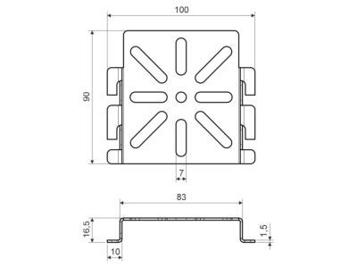 Montážní deska pro instalaci na drátěné žlaby, vhodná pro umístění elektroinstalačních krabic na bočnice drátěných kabelových žlabů, pro snadné vytvoření odbočení kabelových vedení vedených v kabelových trasách. Povrchová úprava - Magnelis®.