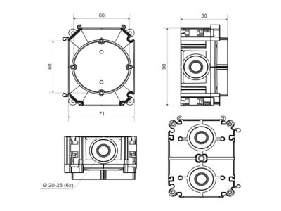 SB-KP 60-50/L - Přístrojová krabice do litých betonů - instalační hloubka 50 mm. Balení 5ks ve fólii. Víko krabice přizpůsobeno pro přibití hřeby, nebo přišroubování vruty na dřevěné bednění. Utěsněné spojení víka s krabicí. Vstupy pro trubky opatřené těsnící membránou proti vniknutí betonové směsi. Možnost pevného spojení krabic na rozteč 71 mm a 90 mm. Možnost fixace krabice do armování pomocí montážních křídel SB-MK 1. Možnost použití krabice pro oboustrannou montáž - vzájemná fixace pomocí ocelových tyček 6 mm KBP-8.