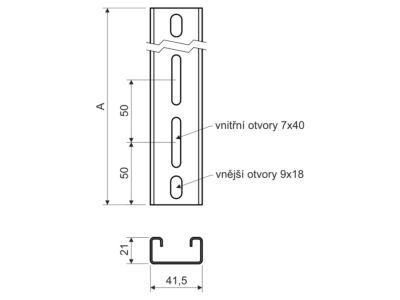 Nerezový profil pro montáž kabelových tras např. na závitové tyče, délka profilu 350 mm.