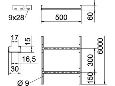 OBO BETTERMANN Kabelový žebřík, přivařená příčka profil C, 60x500x6000, Nerez, materiál 1.4571 A4, 1.4571 bez povrch. úpravy, dodatečně ošetřeno typ LCIS 650 6 A4