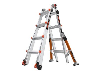 - 90° žebřík: Jedna strana žebříku v konfiguraci A (štafle) lze zkrátit tak, aby byla kolmá k zemi. Můžete tak žebřík více přiblížit například ke zdi.