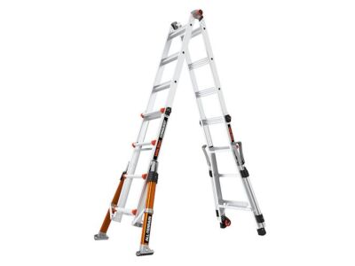 - 90° žebřík: Jedna strana žebříku v konfiguraci A (štafle) lze zkrátit tak, aby byla kolmá k zemi. Můžete tak žebřík více přiblížit například ke zdi.