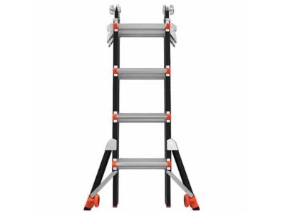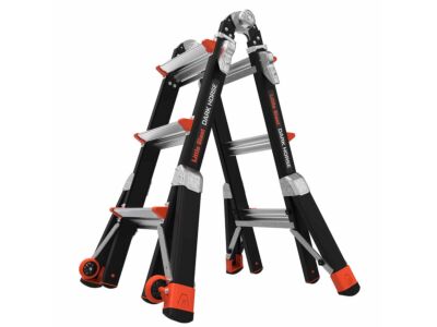 - 90° žebřík: Jedna strana žebříku v konfiguraci A (štafle) lze zkrátit tak, aby byla kolmá k zemi. Můžete tak žebřík více přiblížit například ke zdi.