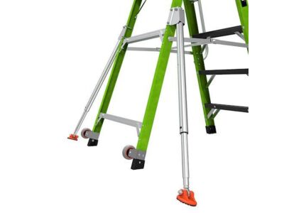 - Plošinový žebřík s pevnou klecí: Plošinové žebříky osazené pevnou uzavřenou klecí eliminují nutnost jištění a umožňují vám pracovat ve výškách oběma rukama.