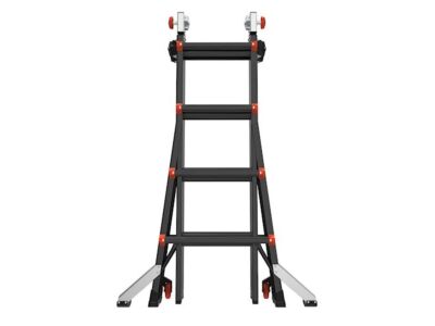 - 90° žebřík: Jedna strana žebříku v konfiguraci A (štafle) lze zkrátit tak, aby byla kolmá k zemi. Můžete tak žebřík více přiblížit například ke zdi.