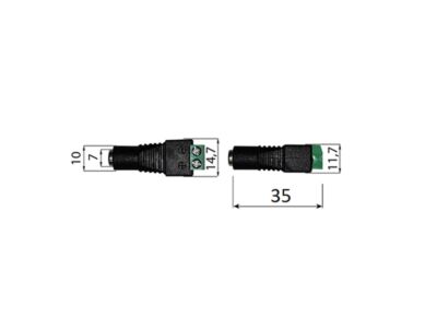 Power konektor, typ zásuvka. Použijte například na přívodní kabely jednobarevného LED pásku. S jet konektorem typu vidlice připevněnému k napájecímu zdroji pak můžete vytvořit rychlý a spolehlivý rozebiratelný spoj. Max. průřez AWG18/0,82mm². Nepřekračujte proud 3A.