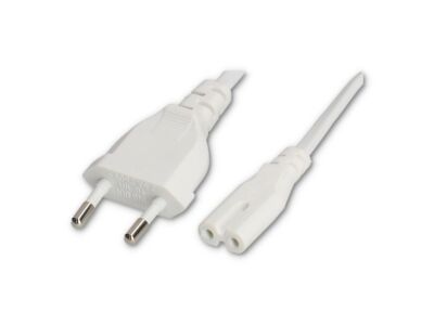 Napájecí kabel 230 V, 2 x 0,5 mm2 s plochou EU vidlicí a 2-pólovým AC konektorem, bílý, délka 1,2 m. Kabel je vhodný pro napájení Smart zdrojů.