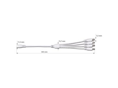 Rozbočovací power konektor - jedna zásuvka a čtyři vidlice. Konektor je kompatibilní s konektory na plastových napájecích zdrojích značky McLED a využijete jej v případě, kdy potřebujete napájet jedním napájecím zdrojem čtyři produkty. Max. 10A. Bílá barva.