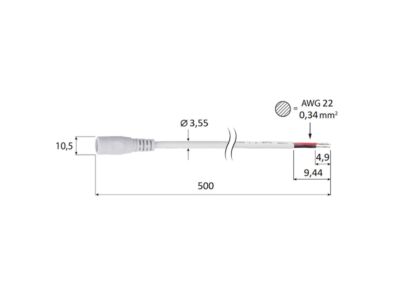 Power konektor – zásuvka, volný konec (AWG 22/0,34 mm²), bílý, max. 3 A, délka 500 mm