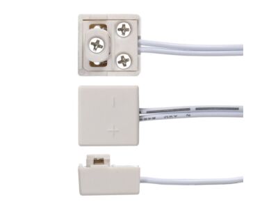 Konektor pro DC lištu s výstupním konektorem L815 (zásuvkou), max. 3A, bílá barva, vč. kabelu AWG20/0,5mm2 - délka 0,6m.