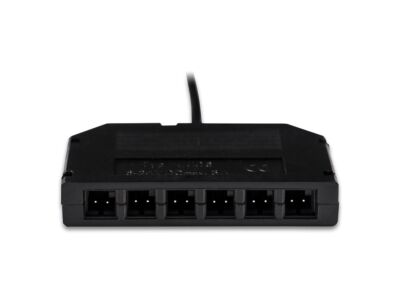 Rozbočovač MP s 6 výstupy, max. 3A/výstup, celkem max. 8A, 2m kabel AWG18/0,82mm² s power konektorem. Rozměry rozbočovače cca: 58,2x10x38 mm, průměr power konektoru cca 10,5 mm. Černá barva.