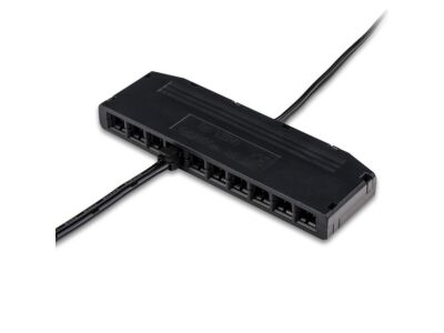 Rozbočovač MP s 10 výstupy, max. 3A/výstup, celkově max. 8A, 0,5m kabel AWG20/0,5mm², volný konec. Rozměry rozbočovače cca: 92,3x10x30 mm. Černá barva.