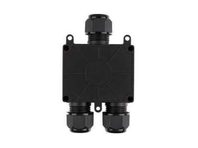 Instalační krabice, IP68, 1x vstup, 2x výstup, Rozměry: 123x83x43mm. Instalované těsnící kroužky pro kabely o průměru 5-9mm, součástí i výměnné kroužky pro velikosti kabelů 9-12mm.