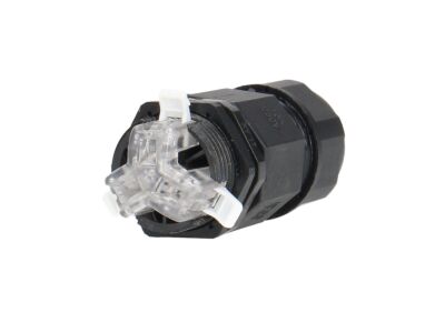 Kabelová přívodka rovná, IP68, měděné poniklované kontakty, připojení páčkami se značením: "+", "W", "Y", 3piny. Rozměry přívodky: délka cca 65mm x průměr 25mm, otvor průměr 21mm, max.16A/250V, pro průměry kabelu 6,5 - 11mm, max. průřez 2,5mm².