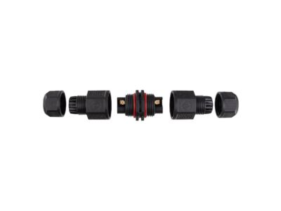 Kabelová spojka rovná, IP67, šroubovací kontakty, L20, 2piny. Rozměry spojky ve složeném stavu: průměr 26,4mm x délka 79,1mm, max. 20A/250V, pro průměry kabelu 6,5 - 10,5mm, max. průřez 4mm².