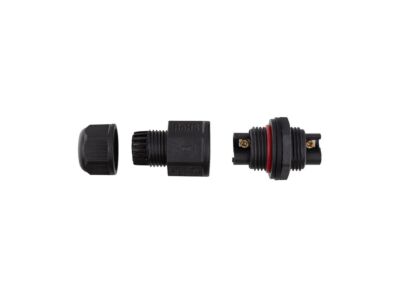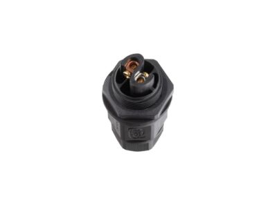Kabelová přívodka rovná, IP67, šroubovací kontakty, L20, 2piny. Rozměry přívodky: délka 65mm x průměr 28 mm, otvor průměr 20mm, max. 20A/250V, pro průměry kabelu 6,5 - 10,5mm, max. průřez 4mm².