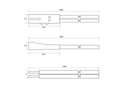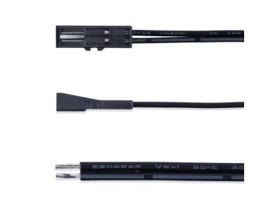 Připojovací kabel s 91505-FP konektorem (zásuvka), 1m kabel AWG20/0,5mm², UL2468, volný konec 5mm, 12-24V max. 3A. Rozměry konektoru cca: 6,4 x 5,5 x 15,4 mm. Černá barva.
