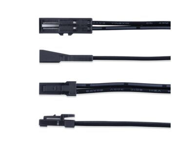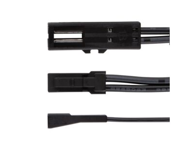 Prodlužovací kabel s konektory 91505-FP (zásuvka) + 91505-MP (vidlice), 1m kabel AWG20/0,5mm², UL2468, 12-24V max. 3A, Černá barva.