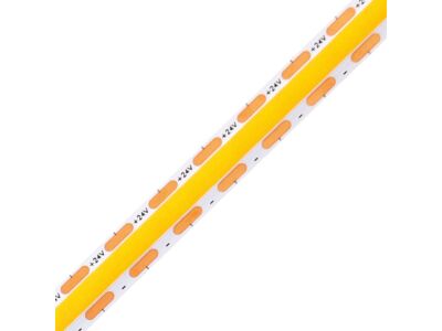 Stmívatelný LED pásek COB, extra teplá bílá (2700K), 12W, 480LED, 1080lm/m, CRI>90, segment 8,33mm, 4LED/segment, IP20, DC 24V, životnost 50000h, šíře 8mm, bílý PCB pásek, max. délka pásku při jednostranném zapojení: 5m, opatřen samolepící páskou 3M, UV stabilní. Balení 5m