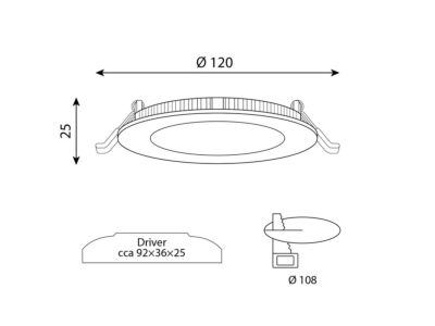 LED podhledové svítidlo 9W černé, 230V, IP20, 2700K - teplá bílá, světelný tok 630lm, vyzařovací úhel 120°, CRI 80, životnost 50.000h, rozměry ø120x25mm, materiál hliník/plast, nestmívatelné, PF>0,8